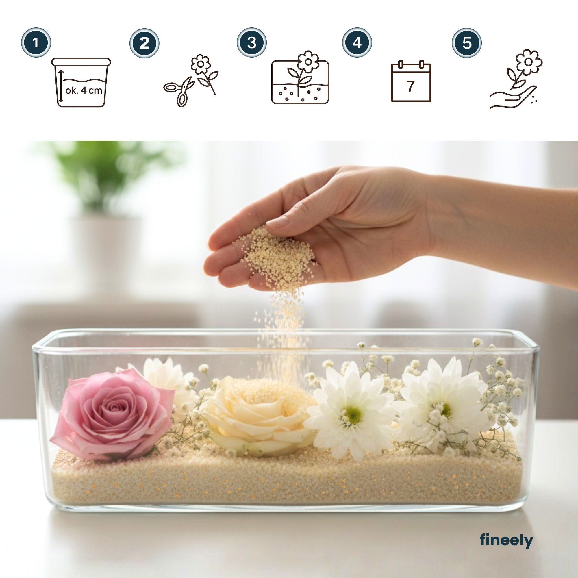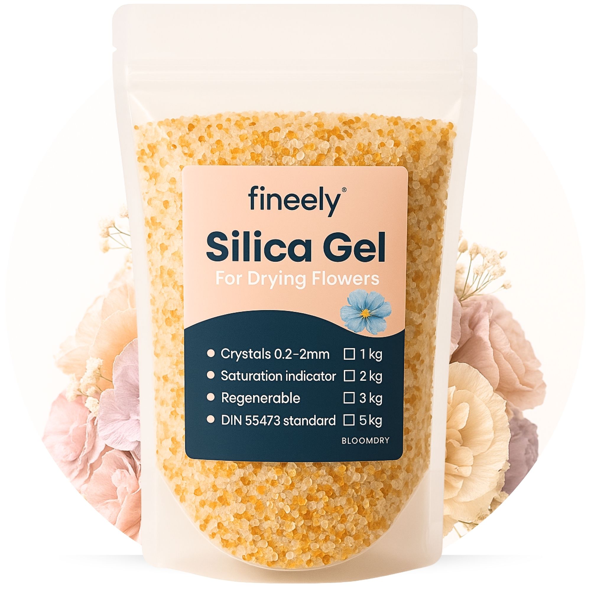 Silica Gel BloomDry to specjalistyczny, drobnoziarnisty żel krzemionkowy w formie kryształków 0,2-2 mm, stworzony z myślą o precyzyjnym i delikatnym suszeniu kwiatów.