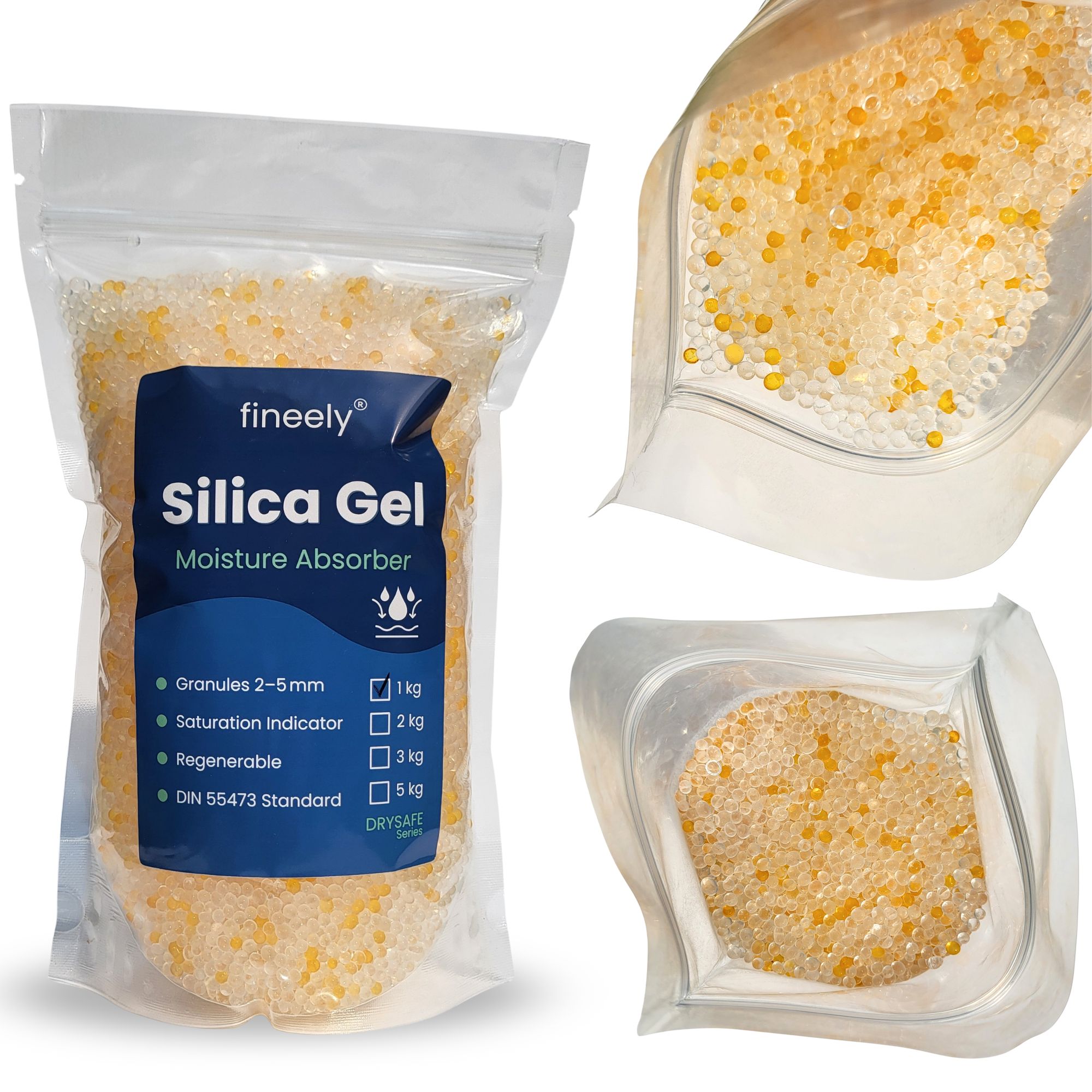 Produkt wykonany jest z żelu krzemionkowego (silica gel) o wysokiej czystości. Jest to materiał nietoksyczny w standardowym użytkowaniu i powszechnie stosowany jako pochłaniacz wilgoci. Nie wydziela nieprzyjemnych zapachów i może wspierać utrzymanie suchego, higienicznego mikroklimatu w zamkniętych przestrzeniach (szafy, pojemniki, opakowania, magazyn).